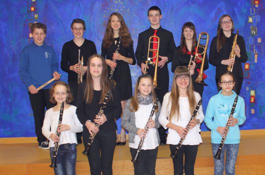 Im Rhabanus-Maurus-Gymnasium St. Ottilien und im Musiksaal Türkenfeld fand am Wochenende der Landesentscheid im Solo/Duo-Wettbewerb für Bläser und Schlagzeuger des Bayerischen Blasmusikverbandes statt. Insgesamt 9 Solisten und 3 Duos aus den Reihen der Stadtkapelle Wertingen hatten sich über mehrere Vorentscheide in 12 Wertungen dafür qualifiziert und dokumentieren damit die hohe Qualität der Ausbildung durch ihre Lehrer an der Wertinger Musikschule. Die besten Ergebnisse gelangen Magdalena Ferstl (Klarinette), aus der Klasse von Heike Heike Mayr-Hof und Maren Baier (Klarinette) aus der Klasse von Manfred-Andreas Lipp, denen mit 94 Punkten jeweils ein 1. Rang mit Auszeichnung bestätigt wurde. Marina Riemer (Sopransaxofon) aus der Klasse von Manuel Jung wurde mit 93 Punkten ausgezeichnet. Peter Wild (Posaune) aus der Klasse von Sandor Szöke folgte ebenfalls mit einem ausgezeichneten Prädikat und 92 von 100 möglichen Punkten. 92 Punkte und ein ausgezeichnetes Ergebnis wurden dem Klarinettenduo Viktoria Krebs/Amelie Grunick aus der Klasse von Heike Mayr-Hof bestätigt. Anna Gaugler (Klarinette bei Manfred-Andreas Lipp) und Viktoria Krebs (Klarinette bei Heike Mayr-Hof) konnten mit 91 Punkten ebenfalls mit dem Prädikat „Mit ausgezeichnetem Erfolg“ abschneiden. Dieses Ergebnis (91 Punkte mit Auszeichnung) gelang auch Sophie Wild (Posaune) aus der Klasse von Sandor Szöke. Anna Pfeifelmann (Klarinette) aus der Klasse von Manfred-Andreas Lipp konnte mit sehr gutem Erfolg 89 Punkte einspielen. Julian Hillenmeyer und Leonhard Moosmüller (Schlagzeugduo) aus der Klasse von Dunja Lettner hatten 89 Punkte und einen sehr guten Erfolg für sich verbucht. Der Trompeter Michael Schäffler aus der Klasse von Tobias Schmid hatte mit 88 Punkten einen sehr guten Erfolg. Als Duo kamen Sophie und Peter Wild (Posaune) aus der Klasse von Sandor Szöke auf 85 Punkte und das Prädikat „Mit sehr gutem Erfolg“. Ohne die herausragende Kondition und die außergewöhnliche Leistung der professionellen Klavierbegleiter Kirill Kvetniy und Evgeny Konnov aus Augsburg wäre die fantastische Bilanz und die beeindruckende Kontinuität der Musikschüler so nicht möglich.