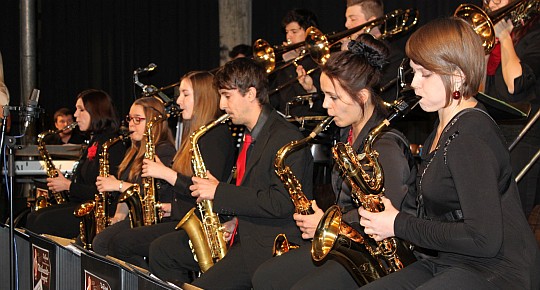 Die Bigband der Stadtkapelle Wertingen unter der Leitung von Daniel Klingl begeisterte am 19. Dezember ihre Zuhörer mit Musik über Schnee, Schneemänner, Schlitten, Trommlerjungs, Kinder und Engel beim Weihnachtskonzert in der Anton-Rauch Realschule.