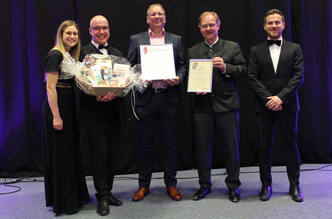 Zum Abschluss überraschte die Vizepräsidentin den vormaligen Präsidenten der Stadtkapelle, Christian Hof, als sie ihn auf die Bühne bat. Hof hatte sich jahrelang tatkräftig als Vizepräsident und später als Präsident der Stadtkapelle Wertingen engagiert. Auch weiterhin bleibt er dem Verein im Führungsteam erhalten, kümmert sich um Licht, Ton und Fotografie bei den Konzerten und verwaltet die Mitgliederdaten. “Was du in der Vergangenheit schon alles für die Stadtkapelle gemacht hast”, sagte Anna-Lena Neukirchner, “macht mich sprachlos”. Aus diesem Grund wurde Hof auf der Bühne die Ehrenurkunde des ASM für 15-jährige Tätigkeit als Vorsitzender verliehen. Für sein außerordentliches Engagement ernannte ihn der neue Präsident Hubertus von Zastrow ebenfalls mit einer Urkunde zum Ehrenpräsidenten der Stadtkapelle. “Ich bin sprachlos”, sagte Hof sichtlich gerührt vor den applaudierenden Zuhörern und Musikern.