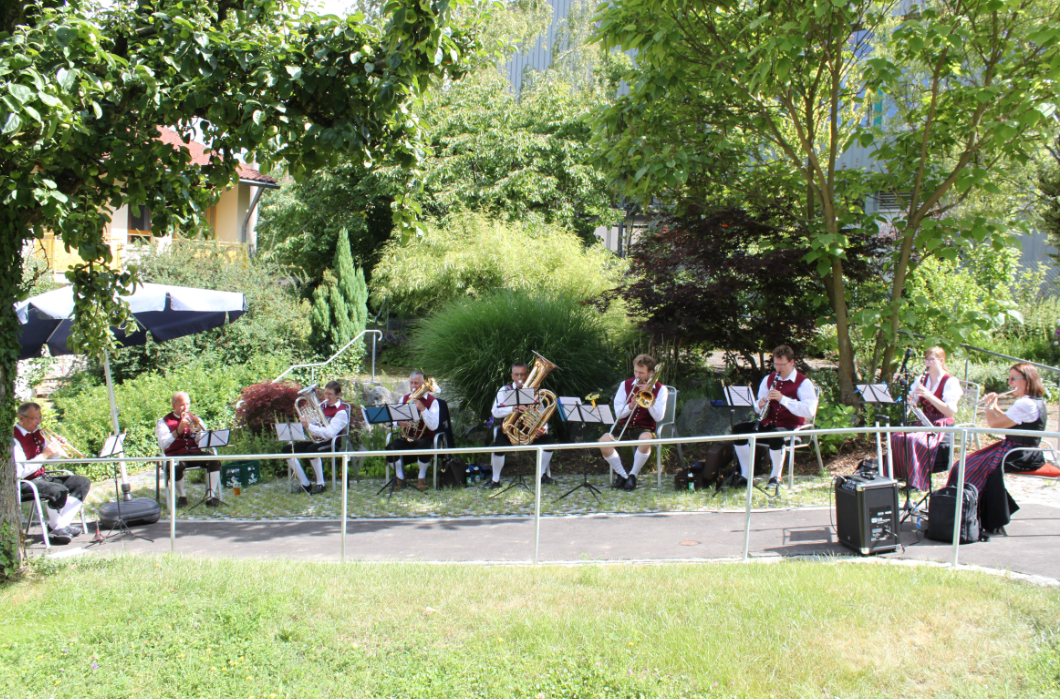 Die Bewohner der Senioreneinrichtung saßen im Garten, genossen die Sonne und die Musik und freuten sich über die gelungene Abwechslung, die die Wertinger Musiker geboten haben.